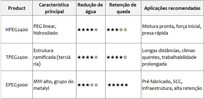 ✅ Desempenho personalizado: selecione com base nas necessidades de redução de água e retenção de abatimento do seu projeto